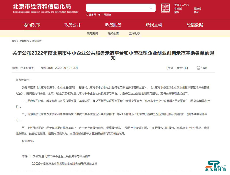 日前,北京市经济和信息化局发布《关于对2022年度拟认定为北京市中小企业公共服务示范平台和小型微型企业创业创新示范基地名单进行公示的通知》,北化科技园经过评审被认定为“北京市小型微型企业创业创新示范基地”。